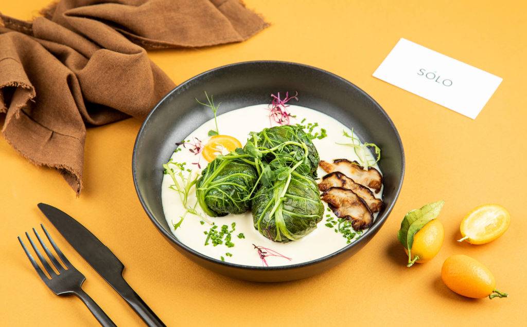 Голубцы из кейла с фаршем из кролика и соусом из белых грибов — в спортивном меню Solo Fitness