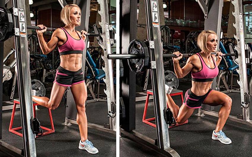 Другая вариация этого упражнения – болгарские выпады в Смите. Делаются они следующим образом: