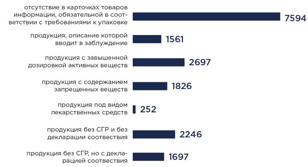 Наиболее часто встречающимся несоответствием требованиям к реализации БАД являлось предложение продукции с завышенными дозировками активных веществ.