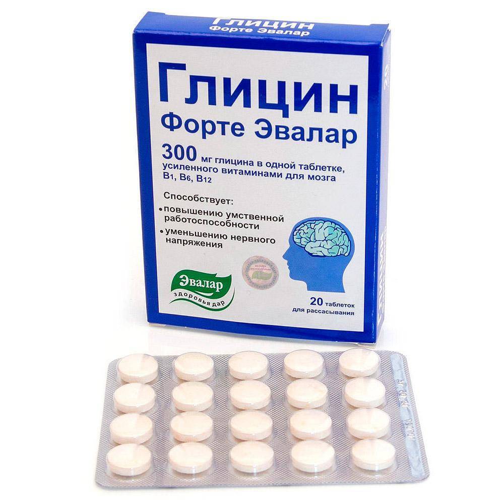 Комплекс для работы мозга. Помимо активного вещества, добавка содержит пребиотик инулин, витамины группы B и аскорбиновую кислоту. Глицин производится в форме таблеток для рассасывания.