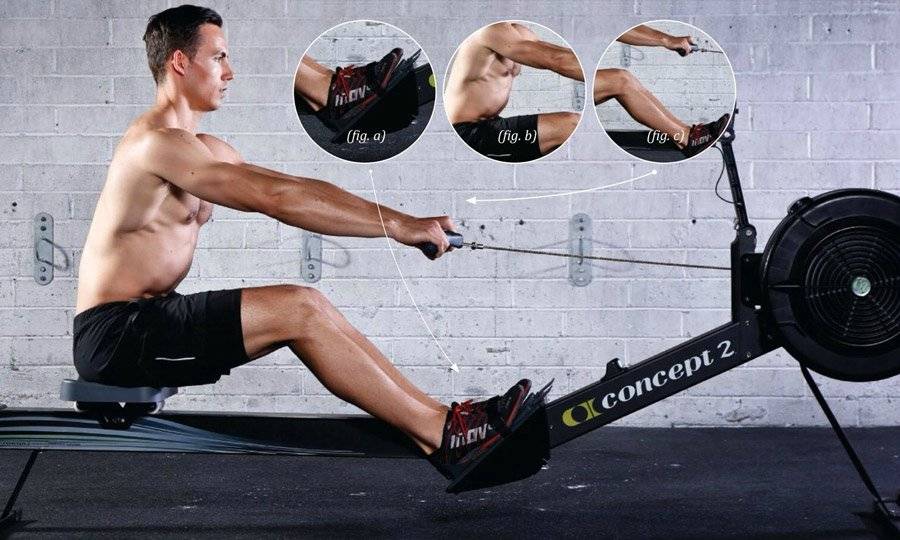 Безошибочная техника выполнения упражнений на гребном тренажере должна обеспечивать активную работу как верхней так и нижней частей тела. Например, при беге или езде на велотренажере задействована по большей части только нижняя часть тела. А при тренировке на гребном тренажере работает практически все тело.