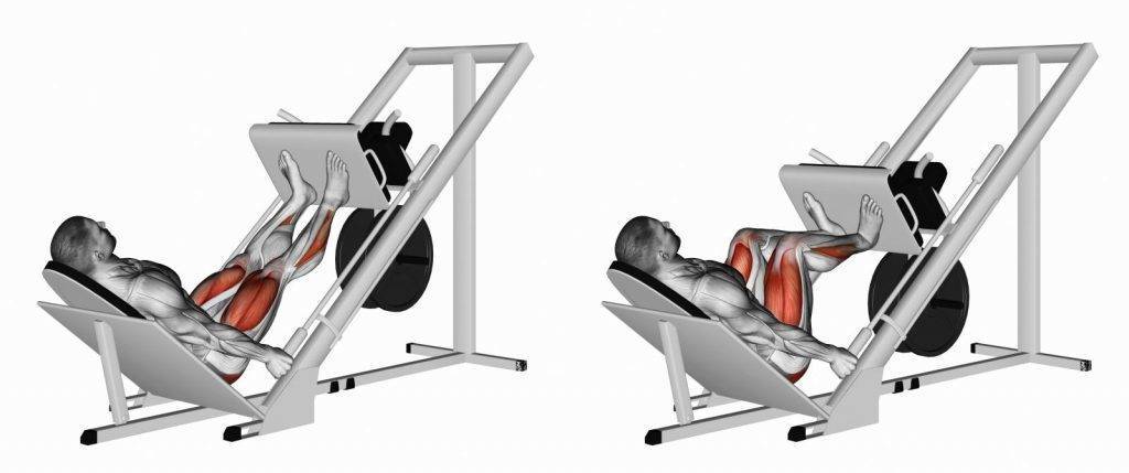 Также из-за согнутых в коленях ног и упора стопами в течение всего подхода адски напрягаются бицепсы бедер. Сами подумайте: можно ли добиться такого эффекта на традиционных тренажерах? То-то же.