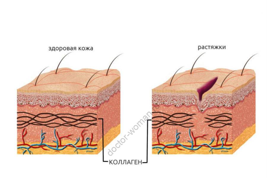 Волокна из коллагена и эластина разрываются в глубоких слоях кожи. Как только травмированная кожа начинает заживать, на этом месте образуется рубцовая ткань.