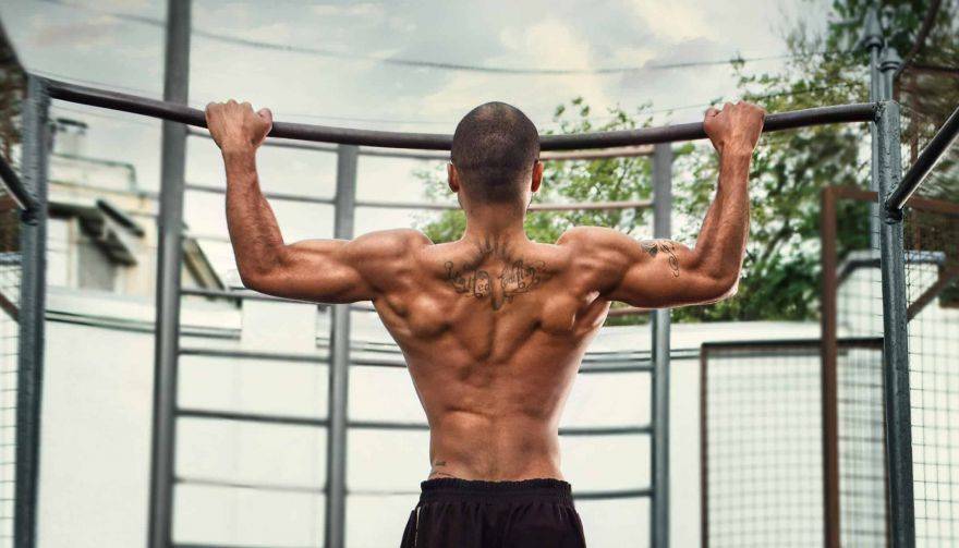 Ставим руки чуть больше ширины плеч. Затем быстрым движением подтягиваемся вверх, так подбородок пересёк перекладину, после чего опускаемся вниз как можно медленнее.