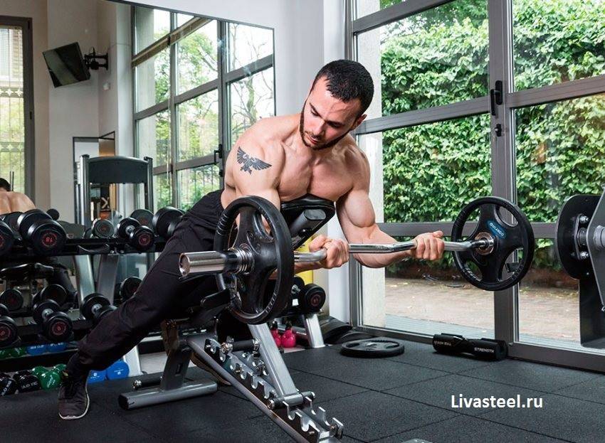 Ваша цель на этот суперсет — контролировать вес; не позволяйте того, чтобы вес диктовал свои условия. Если в процессе выполнения подъёмов вы чувствуете мышцы нижней части спины и передние дельтовидные мышцы, то вы всё делаете правильно. Для французского жима лёжа я предпочитаю гантели – так нагрузка равномерно распределяется на каждый трицепс, и я могу быть уверен, что мои мышцы получают необходимое напряжение.