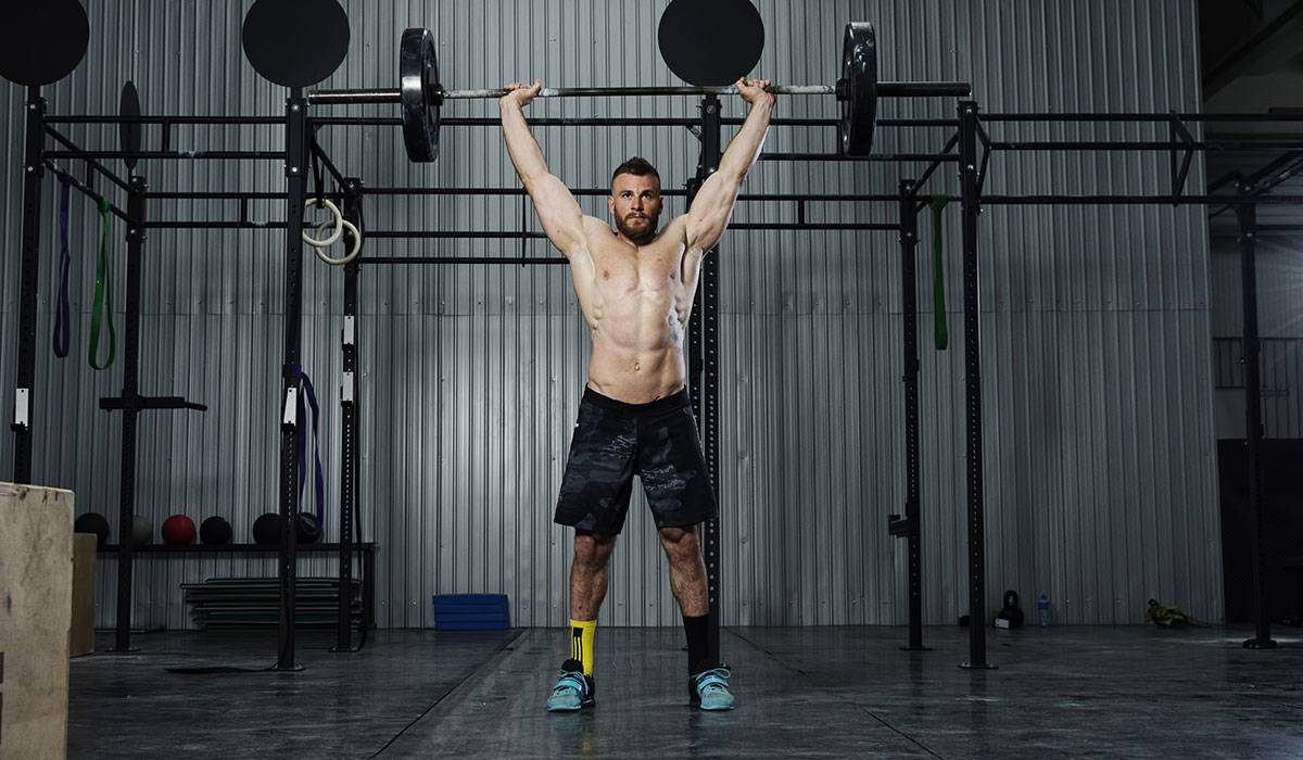 - Жим штанги стоя — 3 подхода по 5-8 повторений