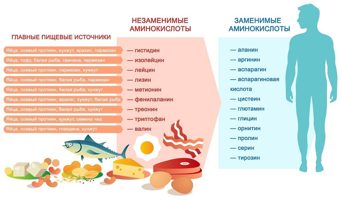 Аминокислоты являются основой всего живого, так как именно из них состоят все белки организма. В спортивном питании наибольшее распространение получили аминокислоты BCAA. Данный комплекс аминокислот состоит из трёх незаменимых аминокислот с разветвлёнными цепочками: лейцин, изолейцин, и валин. Данные аминокислоты составляют 35% от всех аминокислот в мышечной ткани, активируют процессы анаболизма, предотвращают катаболизм и способствуют умеренному жиросжигающему эффекту. Главное отличие аминокислот BCAA от иных аминокислот состоит в том, что они не синтезируются в организме человека самостоятельно, в отличие от других 17 аминокислот, поэтому человек может получить их лишь из пищи или спортивных добавок.