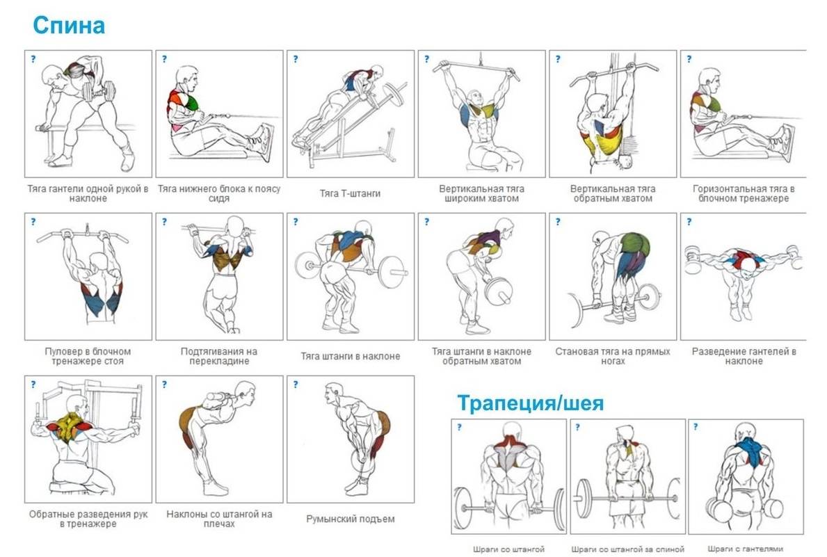 Занимаясь в зале, необходимо прорабатывать следующие группы мышц спины:
