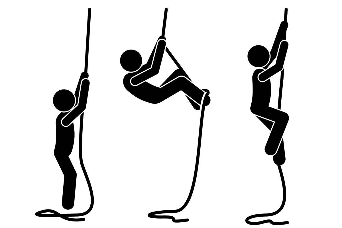 Наиболее мощное функциональное упражнение для укрепления мышц спины и комплексного развития фигуры. При взбирании по канату (или тяге каната сидя) в работу включаются без исключения все мышцы верхней части корпуса, а также пресс.