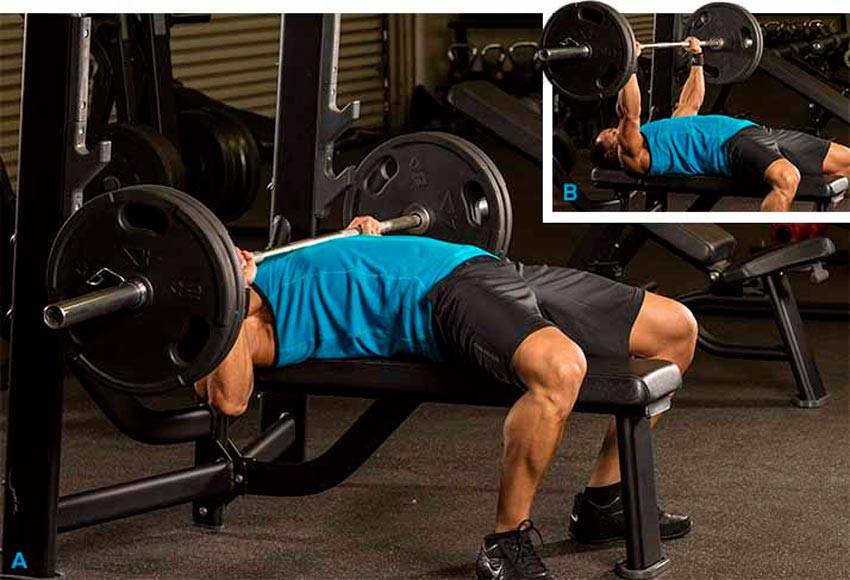 Во время выполнения упражнения лопатки должны оставаться слегка сведенными вместе. Опускать и поднимать штангу нужно максимально плавно. Никаких резких движений.