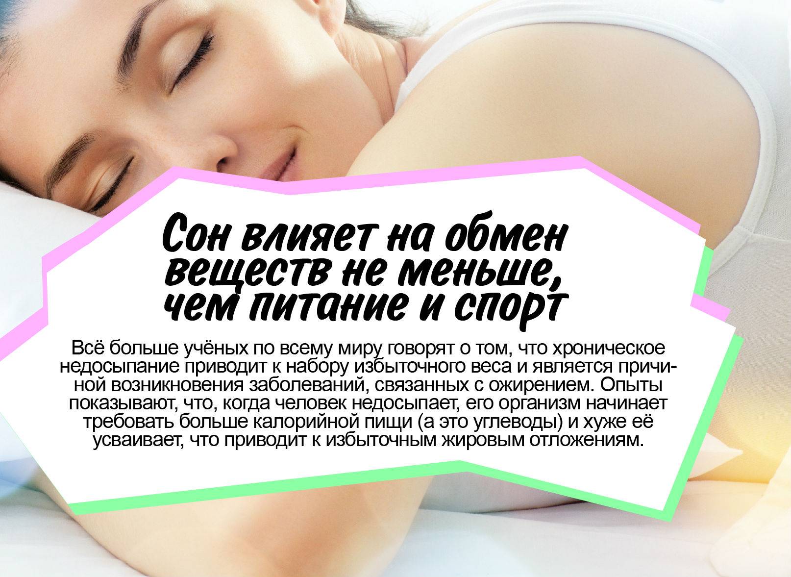 Поскольку метаболизм во время сна замедляется, наедаться на ночь нельзя – организм не сможет утилизировать поступившую энергию, и это приведет к появлению лишних килограммов.