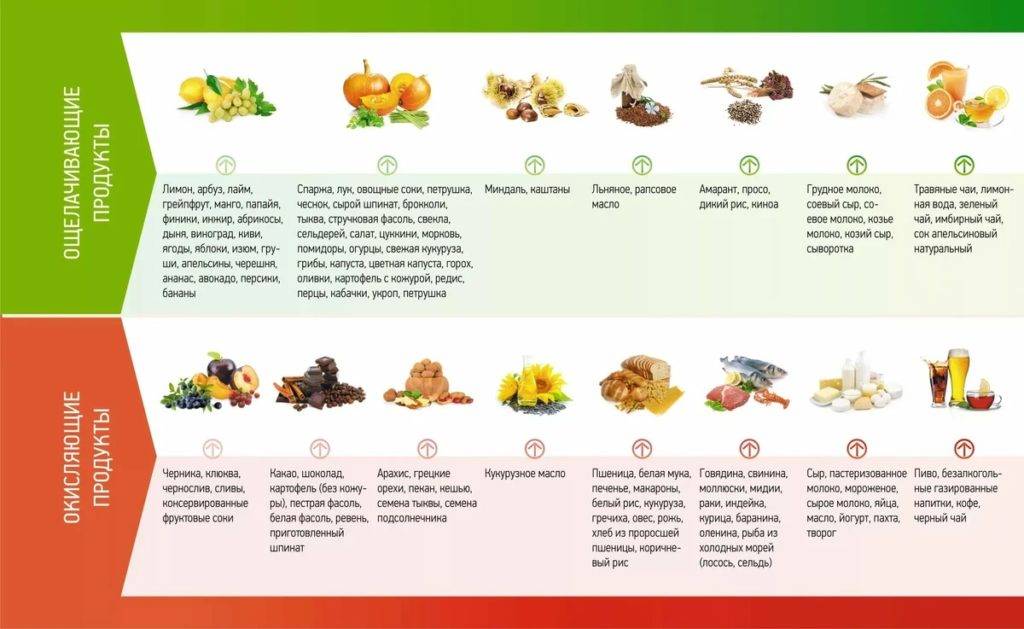 Щелочная диета: таблица продуктов питания, меню