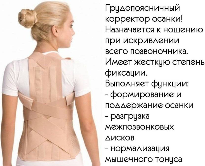 Существуют грудные и грудопоясничные корректоры, а также другие устройства. Грудная модель применяется при изменениях осанки при сколиозе, а также при недугах шейного и грудного отдела.