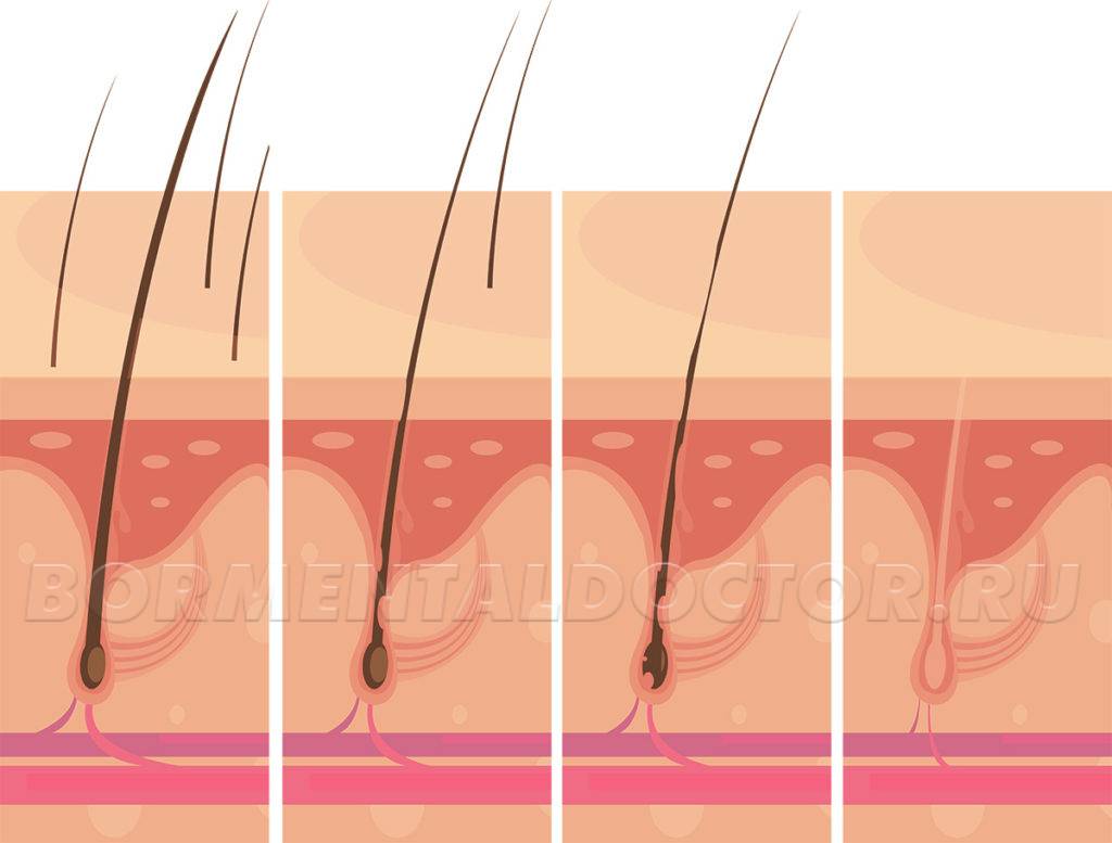 Вред похудения женщины особенно ощущают во внешних проявлениях, когда следом за лишними килограммами устремляются пучки волос. Чтобы понять причину таких последствий, давайте посмотрим на устройство волос изнутри.
