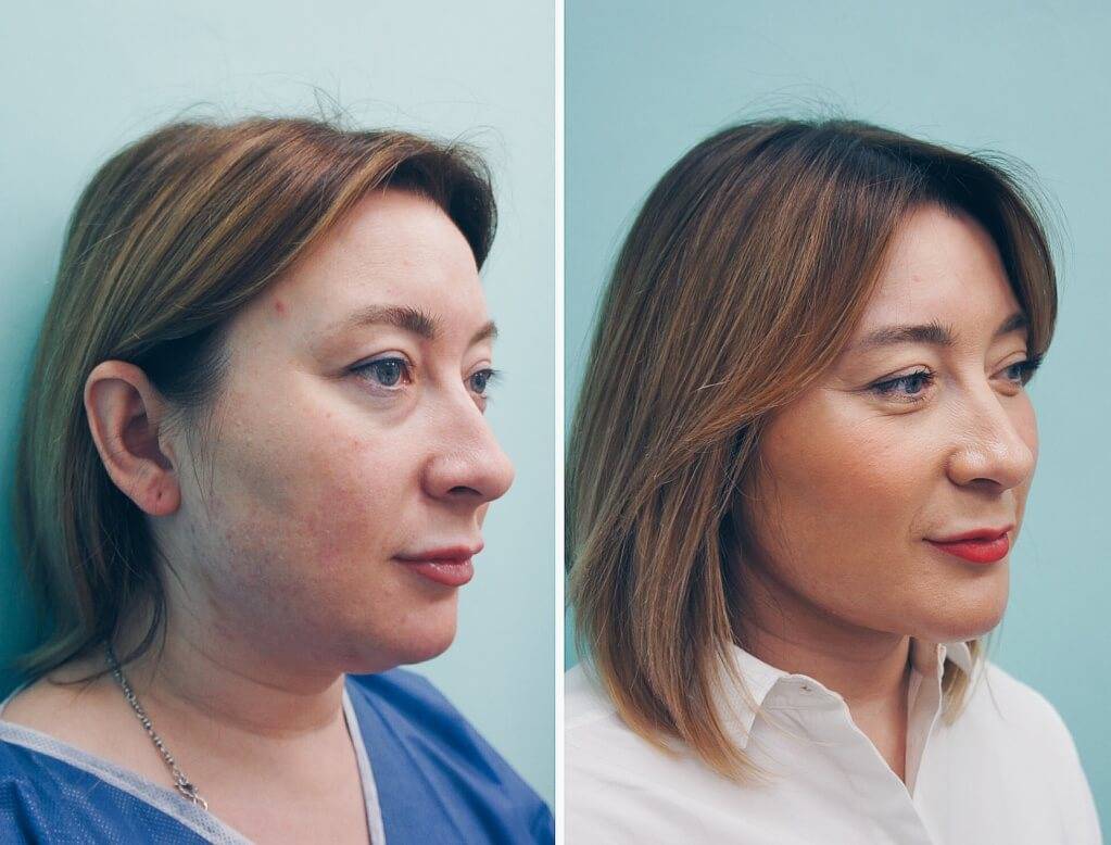 - Исчезновение второго подбородка, мешков под глазами;