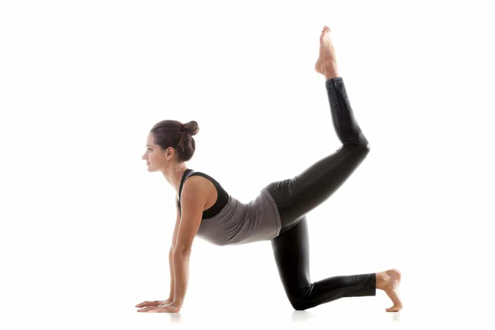 - Поднимите правую ногу назад, максимально напрягая ягодичную мышцу
