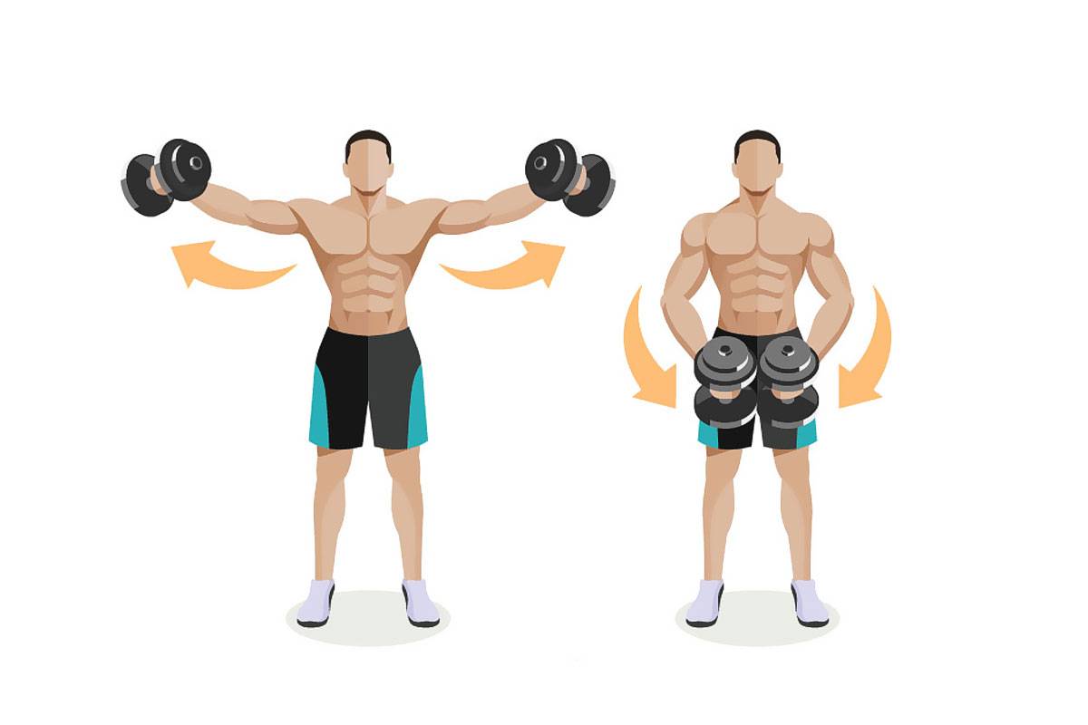 В этом односуставном упражнении для средних дельт вы разводите руки в стороны до уровня чуть ниже плеч. Есть два пути оказаться в верхней фазе амплитуды, но только один является эффективным для проработки целевых мышц.