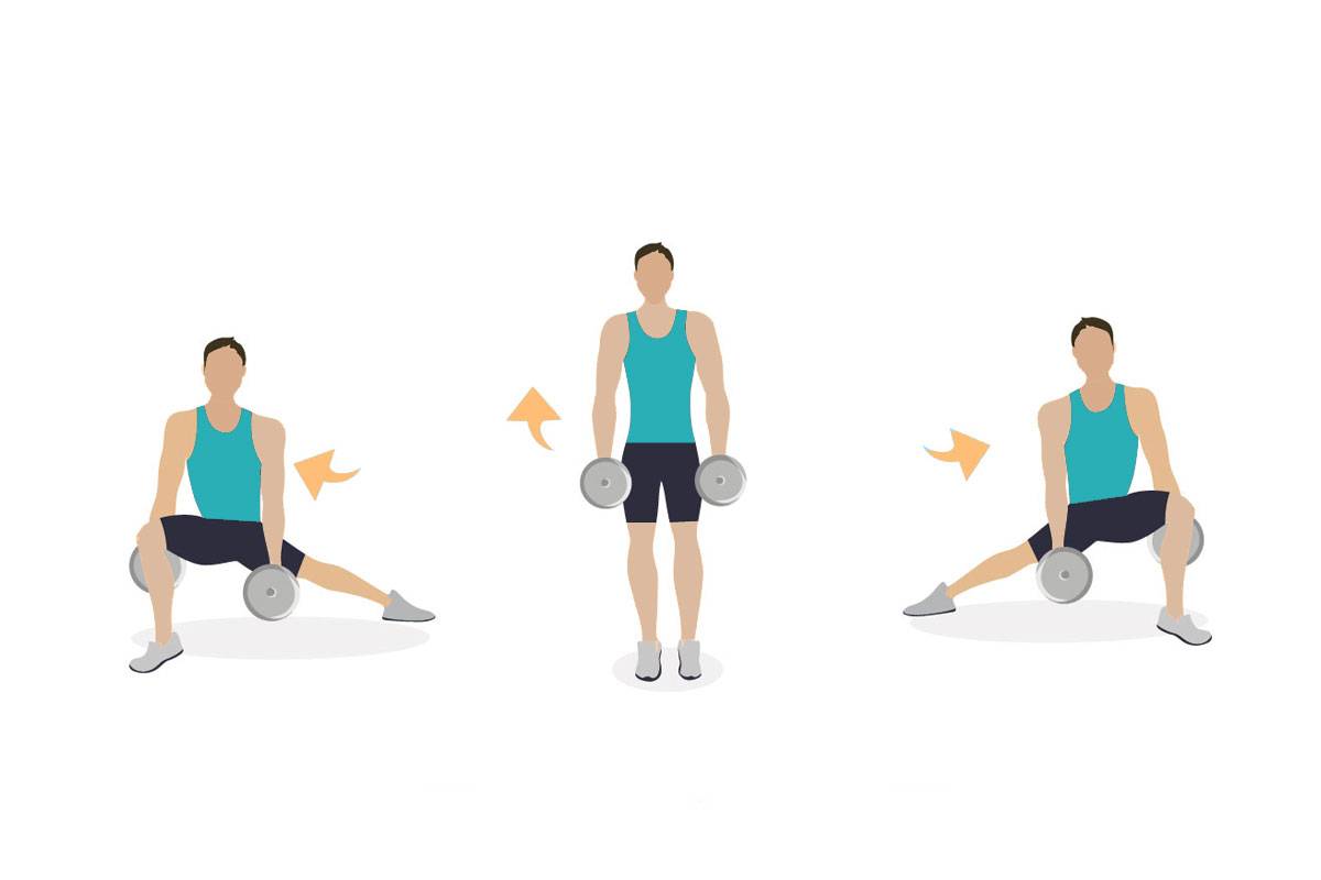 3. Выпады в сторону с гантелями
