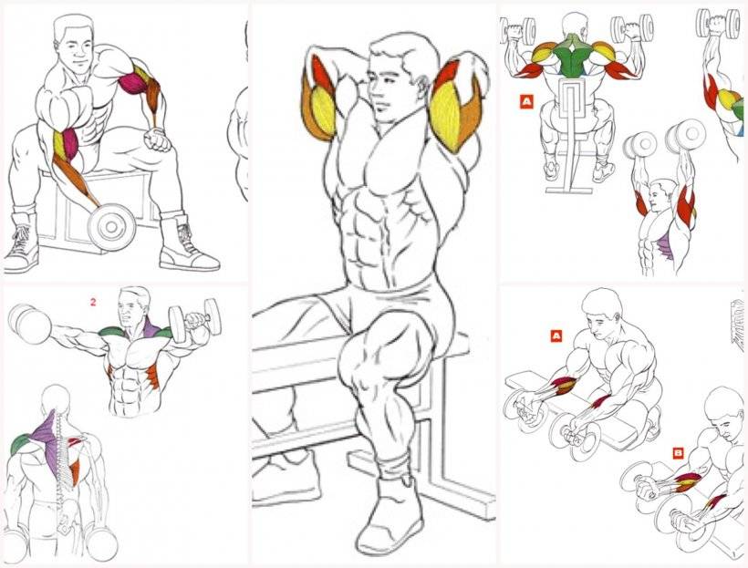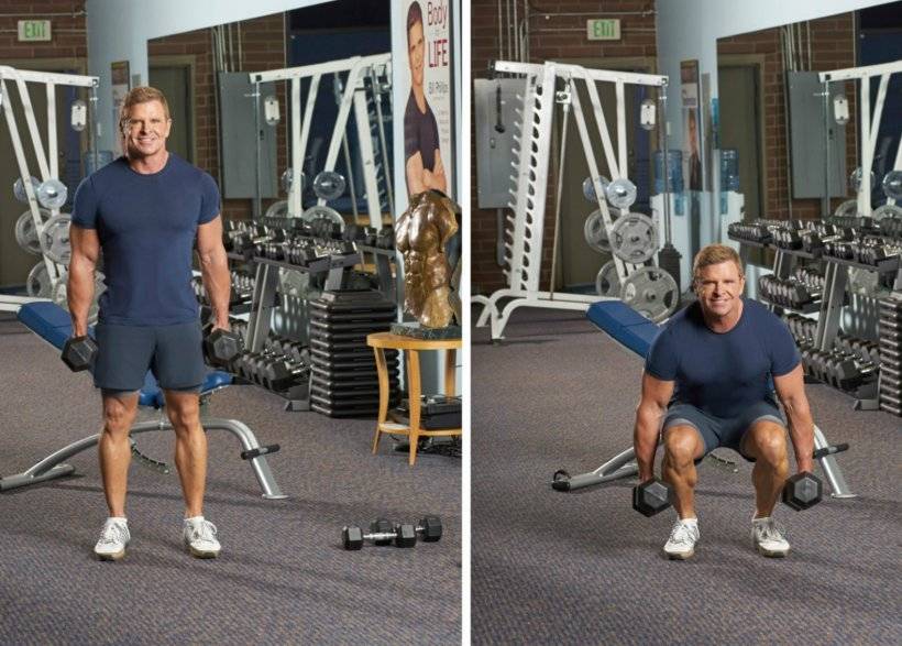 - выполнять упражнения строго контролируемо: гантели не должны двигаться по инерции и опускаться в нижнюю точку под действием собственного веса;