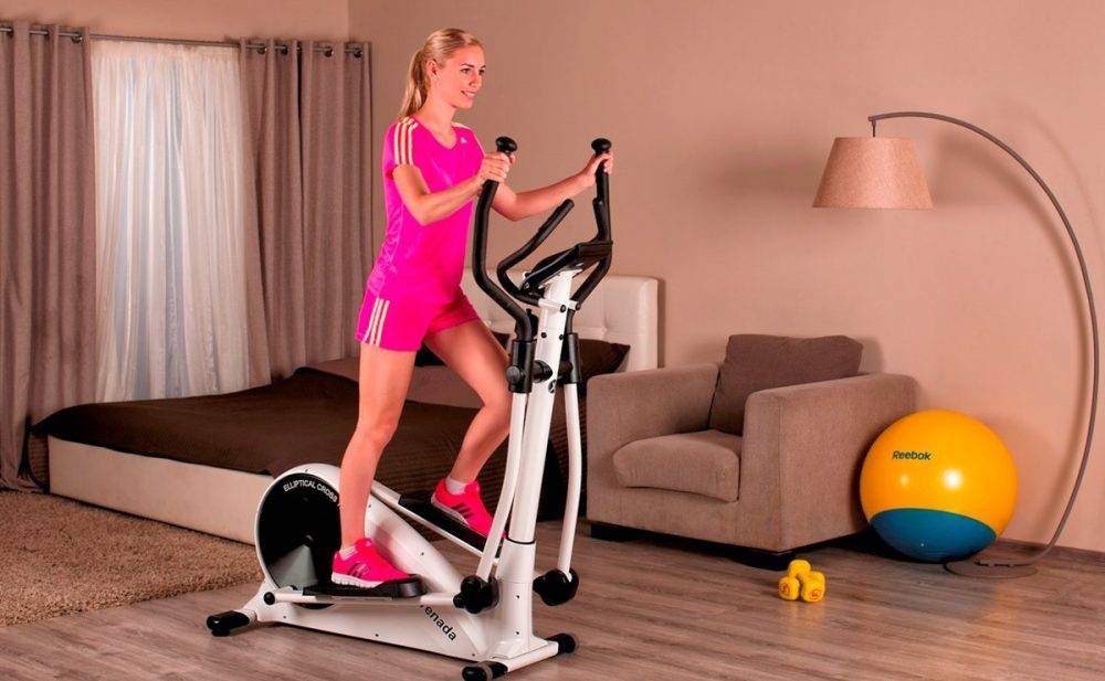 Эллиптический тренажер соединил в себе несколько качеств: велотренажера, беговой дорожки и степпера. Он не дает сильно устать во время занятий, и время тренировки пролетает быстро.
