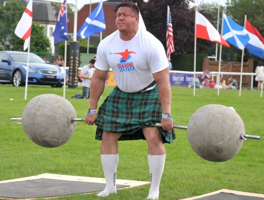 - Переброс камня атласа (atlas stones) весом 245 кг через высоту 130 см.