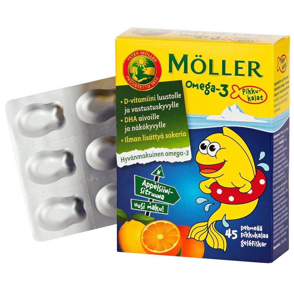 Финский бренд Moller (Моллер) компании Orkla выпускает ряд популярных в Европе и России витаминов, среди которых по востребованности лидируют содержащие Омега-3 добавки. Они подходят для детей и их родителей, для пожилых людей и тех, кто регулярно испытывает высокие нагрузки на сердце. Всего есть более 10 разновидностей средств, некоторые наиболее популярны.