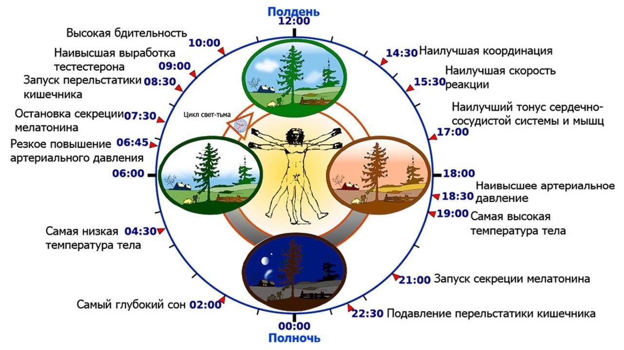 Рисунок 2. Биологические часы человека. Самый глубокий сон наступает в 2 часа ночи. Изображение: Kirill Borisenko / Wikipedia (CC BY-SA 4.0)