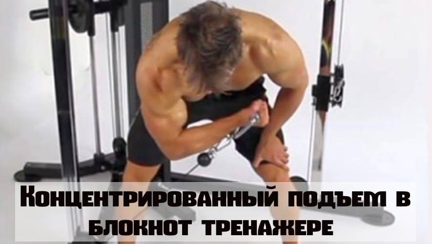 Этот вариант встречается крайне редко, но все же имеет место быть. Выполняется он также из положения стоя. Только вместо гантели в роли отягощения, будет выступать трос блочного тренажера, с установленной D образной рукоятью. Благодаря этому, мы сможем увеличить нагрузку на бицепс, особенно в верхнем положении. Ведь теперь нам надо будет не только преодолеть вес отягощения, но и силу сопротивления троса. Который будет стараться распрямить нашу руку. Если, выполняя концентрированные подъемы вы не чувствуете работу бицепса, тогда этот вариант вам сможет помочь. Но стоит учесть, что блочный тренажер сам по себе популярен и не всегда бывает свободным. Поэтому иногда вам надо будет подождать пока он освободиться. Или вовсе отложить это упражнение на потом.