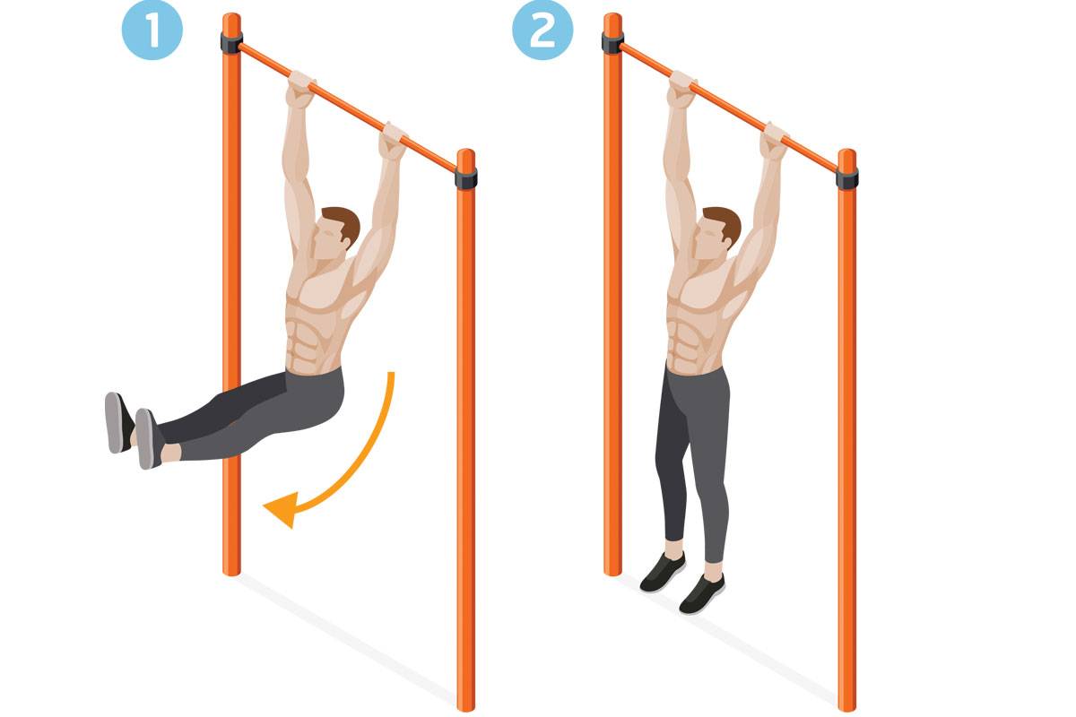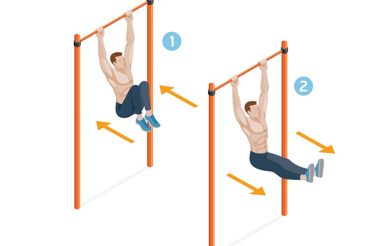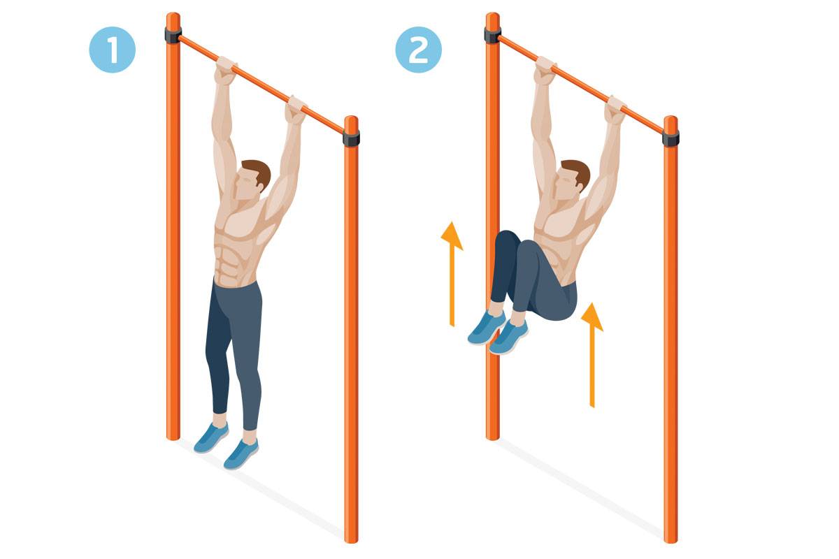 Упражнений на турнике для прокачки пресса существует несколько, начнём с самого популярного и простого из них.