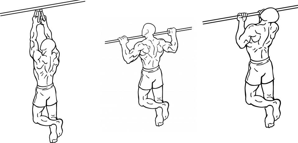 Разновидность подтягиваний заключается в изменении ширины хвата и непосредственно самого хвата (прямой или обратный). От этих изменений зависит акцент нагрузки, ложащийся на определенные мышцы.