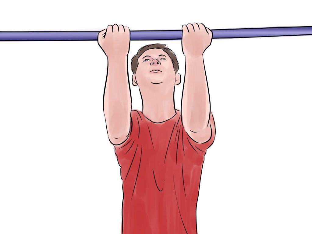 - Возьмитесь за перекладину обратным хватом. Руки должны находиться на ширине плеч.
