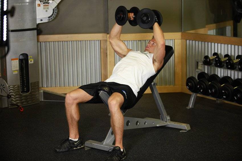 | Жим гантелями в наклоне | 4 | 8-12 |
