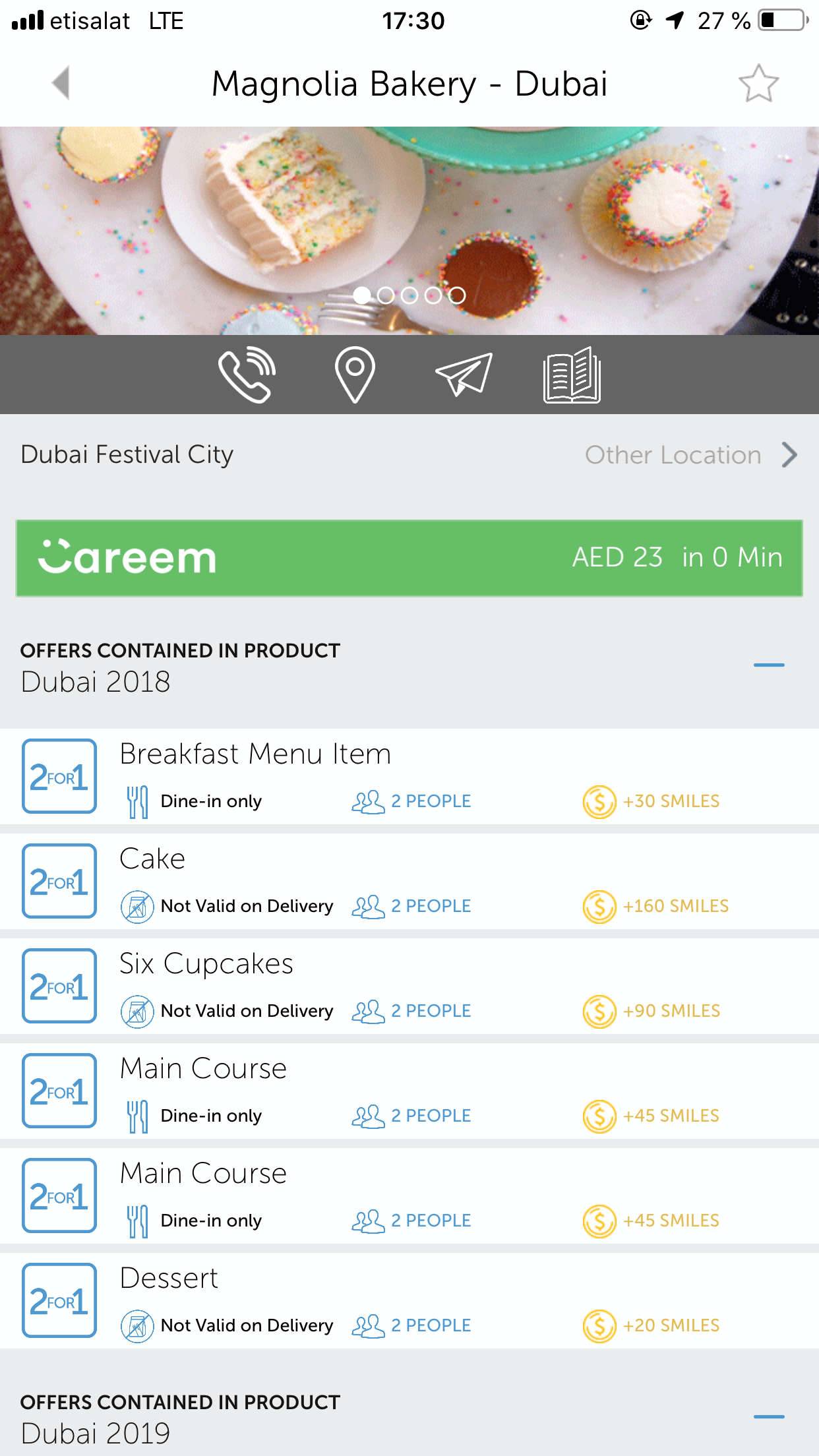 13070 дирхам (₽1400); на данный момент ресторан отключился от Entertainer.