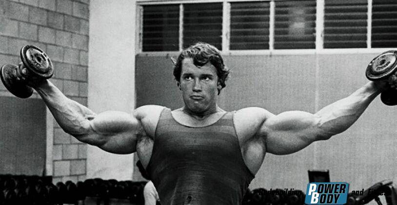 «Наиболее эффективным движением для меня было упражнение, названное в мою честь — жим Арнольда. Это движение вы начинаете фактически из верхней точки сгибаний гантелей на бицепс (руки полностью согнуты в локтевом суставе, ладони обращены к вам, гантели находятся на уровне с плечами).