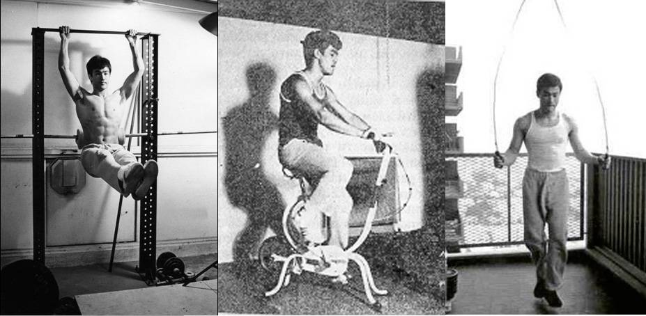 Брюс Ли много времени уделал бегу. Обосновывая это тем что, если человек не может выдержать такой нагрузки (бега), то ему нечего ловить в спорте. Сам он бегал порядка 6 раз в неделю, по четверти часа.