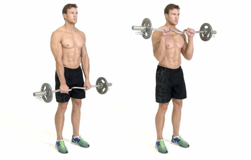 Так как бицепсы активнее подключаются при супинации предплечья, пронированный хват снимает с них нагрузку и переносит на брахиалис (исследование). А изогнутый гриф комфортнее для задействованных суставов (по сравнению с обычным).
