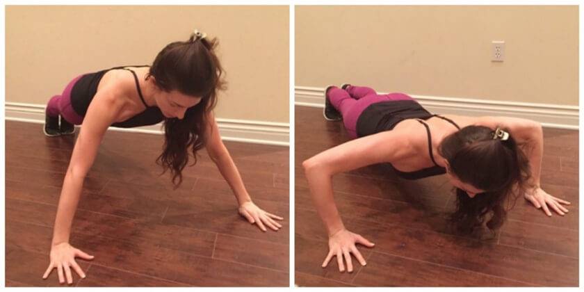 Самое легкое упражнение, которое идеально подойдет новичкам. Выполняется почти так же, как и в классическом варианте, с одним отличием – колени стоят на полу. Не поднимайте голени вверх, чтобы спина оставалась прямой. Внимательно следите, чтобы поясница не прогибалась, таз был подтянут, а пресс – напряжен.