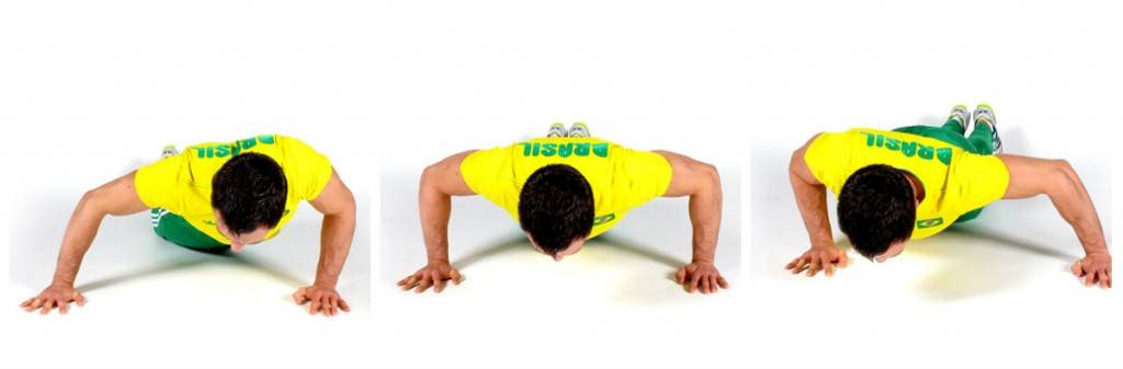 - отжимания. Встаньте в классический упор на руках – кисти следует разместить максимально далеко друг от друга (расстояние на котором вы сможете удерживать равновесие и технически верно выполнять все движения). Далее медленно опускайтесь к поверхности пола и поднимайте тело обратно.