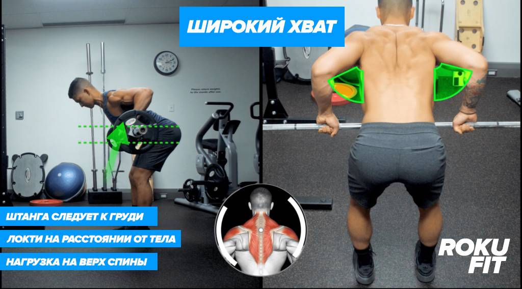 Широкий хват в тяге штанги в наклоне: работающие мышцы