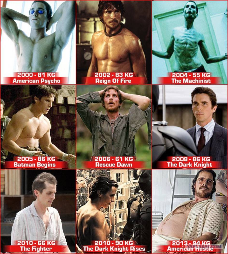 Для съёмок ему часто приходилось то набирать, но сбрасывать вес, причём в весьма короткие сроки. Трансформации его тела не могут не удивлять: