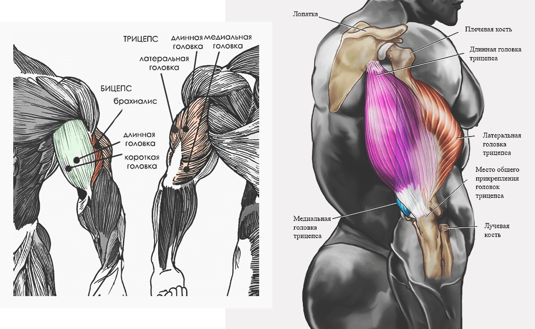 Как ты можешь видеть, совокупность каждой из частей трицепса создает такой отчетливый рельеф руки, которым обладают бодибилдеры