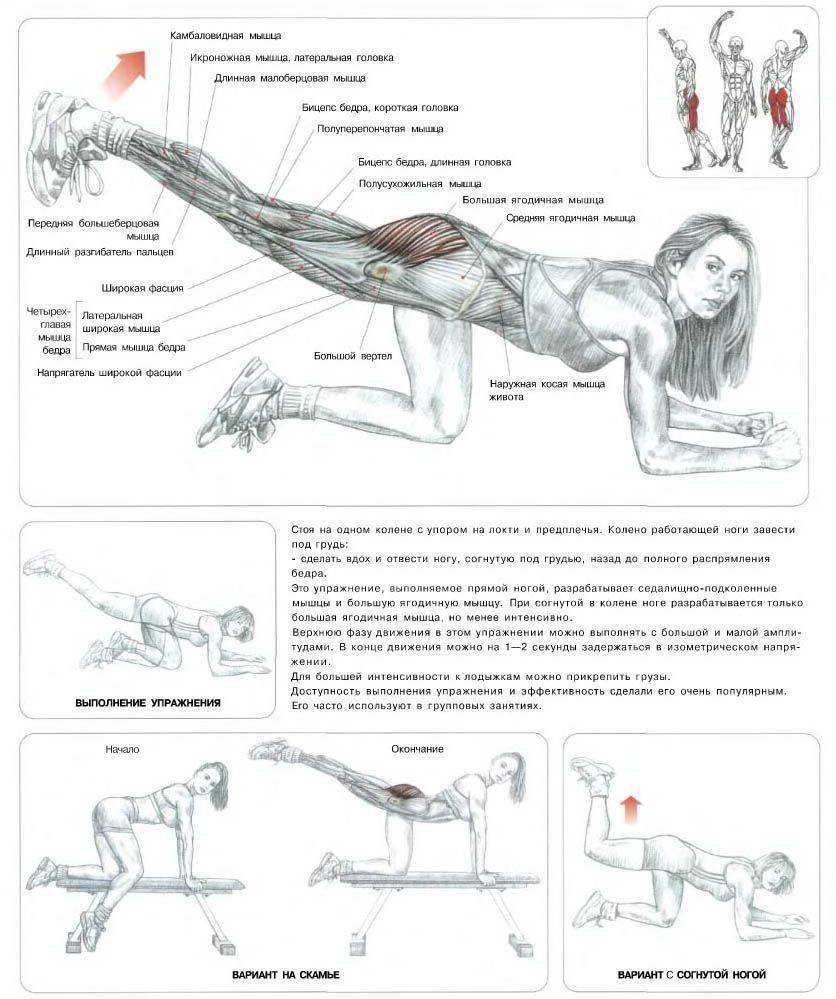 Придает объем и упругость ягодиц. Выполняйте ее преимущественно в начале тренировке, 3 подхода по 12 повторений. Смотрите технику выполнения данного упражнения здесь.