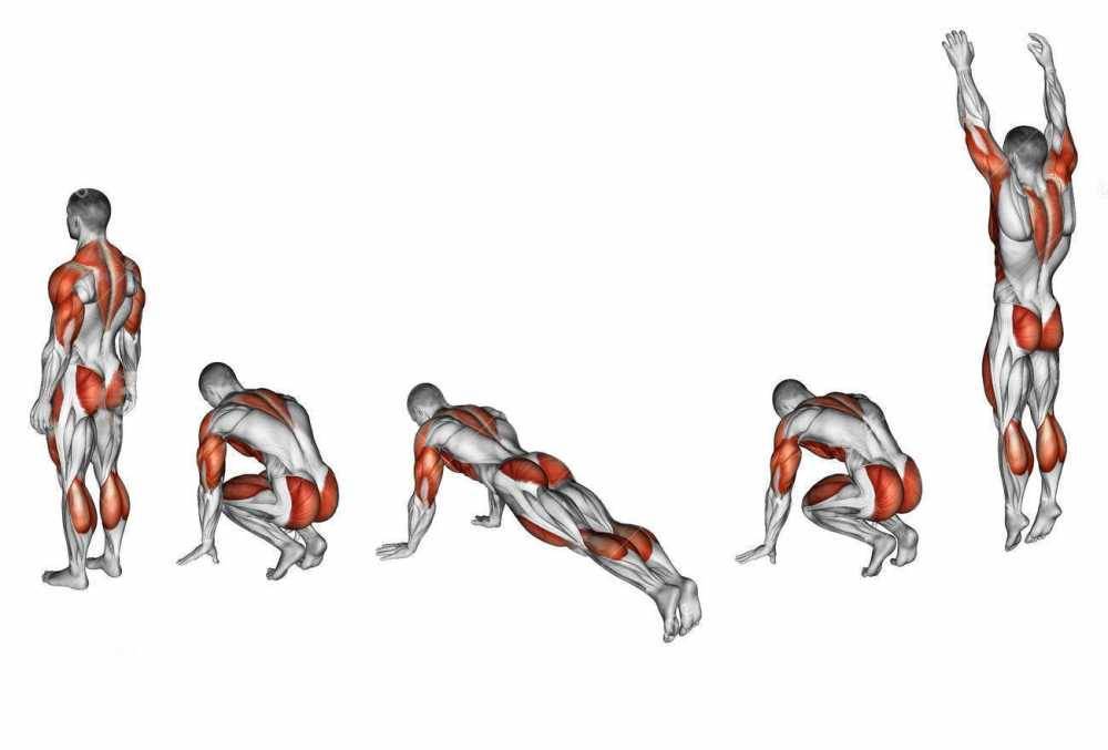 Берпи – многосуставное упражнение, которое вовлекает в работу сразу несколько мышечных групп. Наиболее загруженными мышцами являются ноги (бицепс бедра, ягодичные и икры), также нагрузка ложится на грудные мышцы, трицепс и плечи. Задействованы мышцы пресса. Практически нет таких мышц, которые бы не затрагивало берпи.