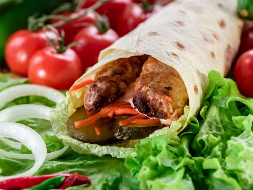 - Замена шаурме — лаваш, начиненный разными продуктами – мясом, фаршем, овощами, зеленью. В качестве соуса можно использовать йогурт, заправленный тертым чесноком, измельченной зеленью.