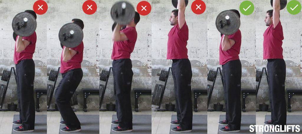 Некоторые атлеты вместо жима выполняют полутолчок, швунг, что угодно, лишь бы столкнуть вес ногами. Если не получается выжать штангу плавно и руками, стоит просто уменьшить вес отягощения. Не нужно обязательно работать с помощью корпуса, и ног.