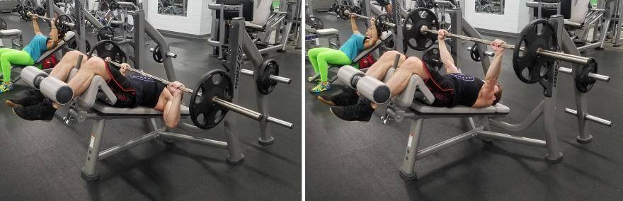 Наклонный жим лежа настолько же популярен в тренажерных залах, как и классический жим на горизонтальной скамье. Жим штанги лежа вниз головой зачастую пренебрегается, и, как показало исследование, проведенное в институте Wayne State College, пренебрегается напрасно.