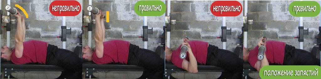 Для этого партнер располагается за вашей головой и внимательно смотрит, в каком положении находятся предплечья в тот момент, когда штанга опущена в крайнюю нижнюю точку.