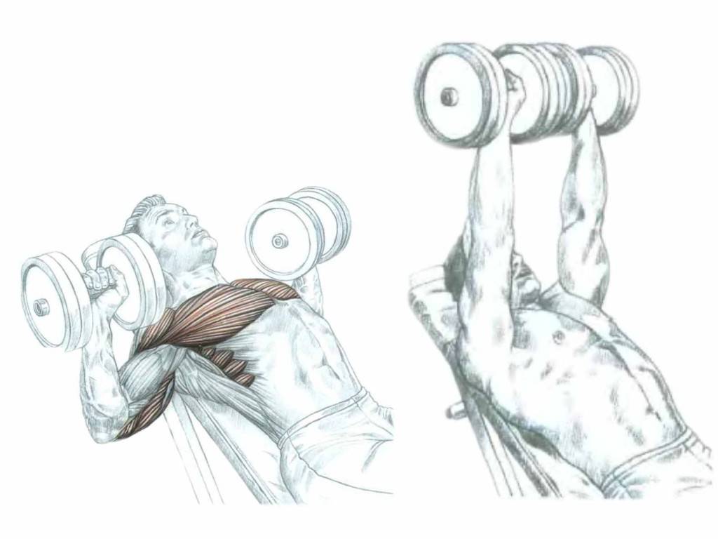 Разводка гантелей лежа на горизонтальной скамье. Ни для кого не секрет, что растяжка имеет огромную роль в прогрессии силовых показателей. Именно разводки лучше всего справляются с этой задачей, делая фасции грудных мышц более пластичными, что значительно упрощает опускание тяжелой штанги на грудь. Другие аналогичные упражнения, такие как сведения в кроссовере или «бабочка», по моему мнению, менее эффективны, однако тоже имеют место быть на определенных этапах тренировочного процесса.